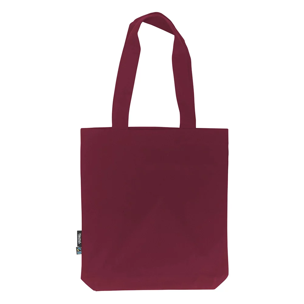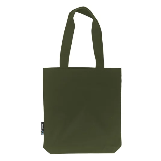 Fairtrade-zertifizierter Cotton Bag aus gekämmter Bio-Baumwolle, Twill-Gewebe, lange Griffe, Neutrales und Fairtrade-Flaglabel an der Seite