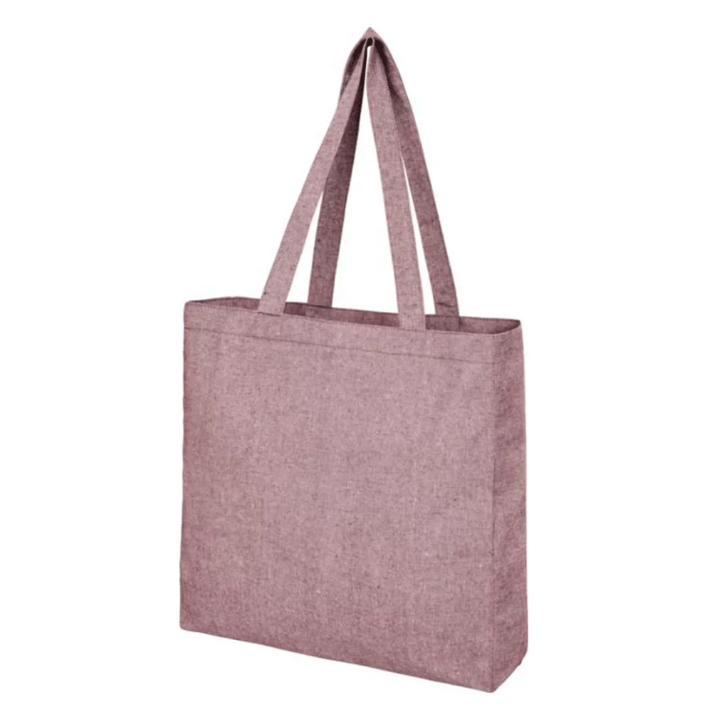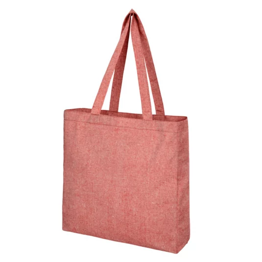 Strapazierfähige Tragtasche aus 80 % rezyklierter Baumwolle (210 g/m²) aus Verbrauchsabfällen in Textilfabriken und 20 % rezykliertem Polyester, mit grossem Hauptfach, Henkellänge 31 cm