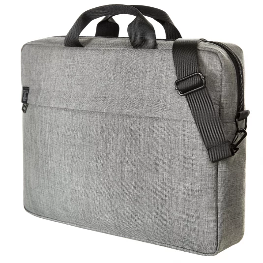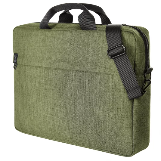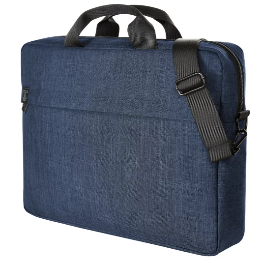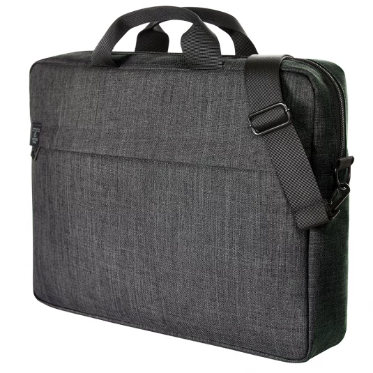 Tasche aus rPET Obermaterial, mit gepolstertem Hauptfach, 2-Wege-Reissverschluss, gepolstertes Einsteckfach, rückseitige Befestigung für Trolley-Gestänge, abnehmbarer, längenverstellbarer Schultergurt