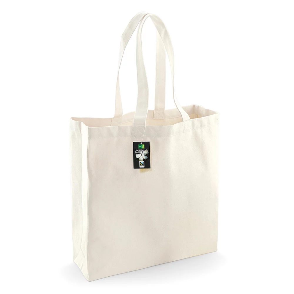 Shopper Bag aus Fairtrade-zertifizierter und gekämmter Baumwolle, kann durch lange Tragegriffe in der Hand oder über der Schulter getragen werden Henkellänge: ca.