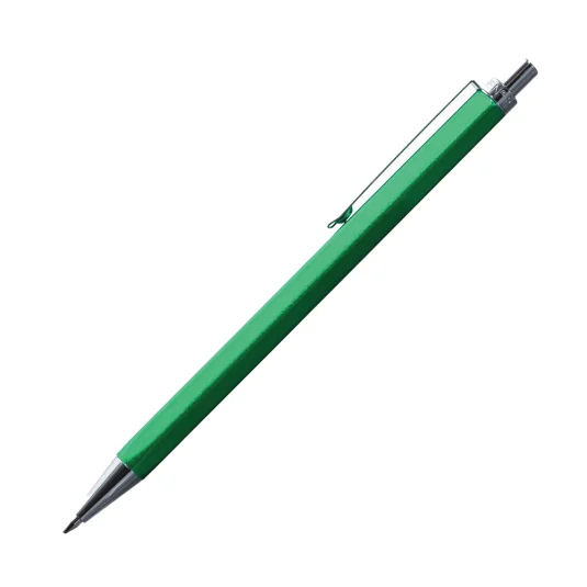 Swiss Design – ein hochwertiges, schlankes Schreibgerät mit nickelbeschichtetem Messingschaft und verchromten Beschlägen, ausgestattet mit einer Metall-Grossraum-REZPEN®-Mine (blau), die auf Schweizer Präzisionsmaschinen gefertigt wird und eine Schreiblänge von über 5'000 Metern bietet