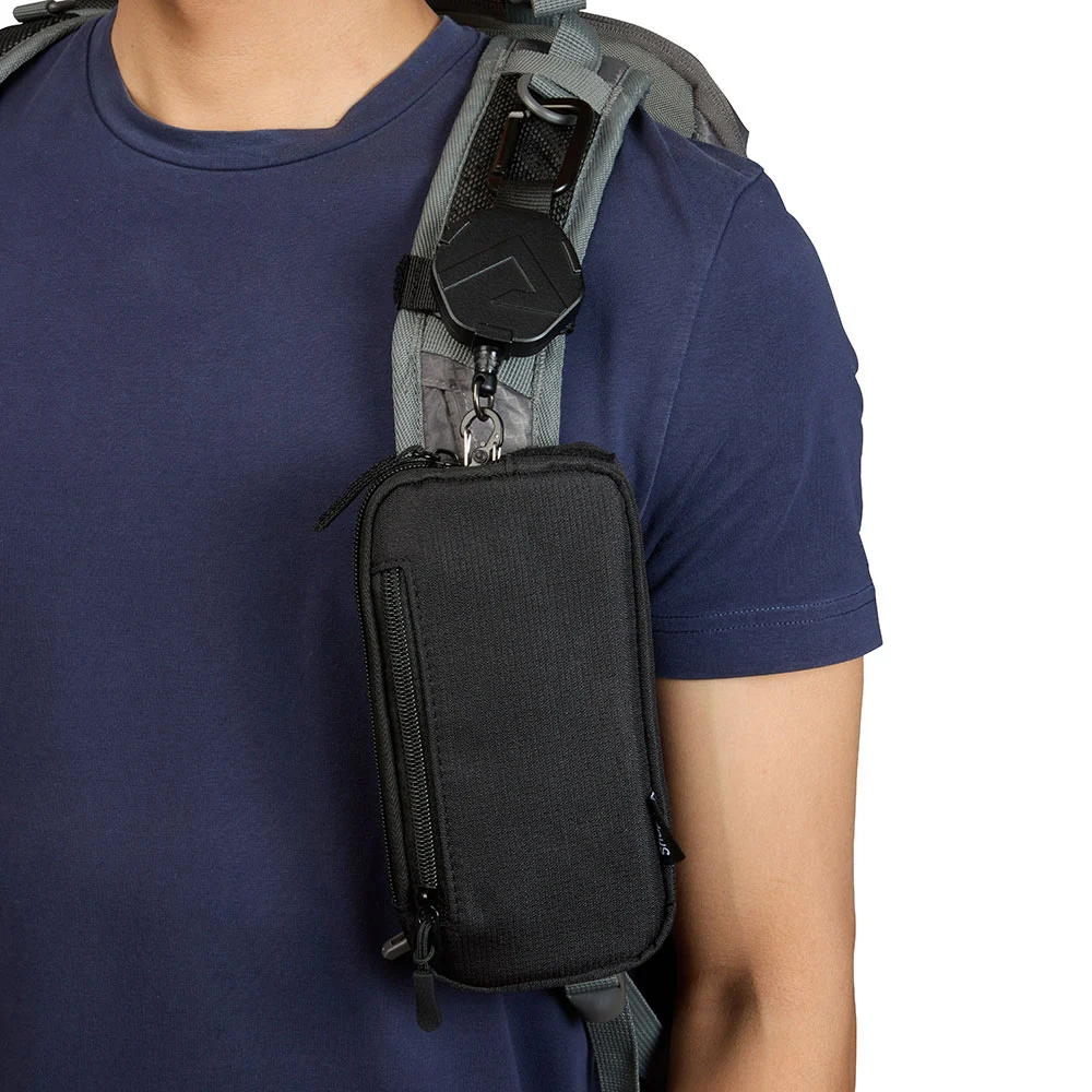 Connect your Smartphone - schneller und sicherer Zugriff während jedem Outdoor-Abenteuer! Set bestehend aus einem Winter Bag und einem Lock. Smartphone Halterung aus reissfestem Material mit einem Lock-System, einem Karabiner und Strap zur Befestigung an jedem Rucksack. Mit dem Batch kann jedes Smartphone mit einem Cover befestigt werden. Das Drahtseil mit einer Länge von 80 cm kann ein Gewicht von ca. 2 kg halten.