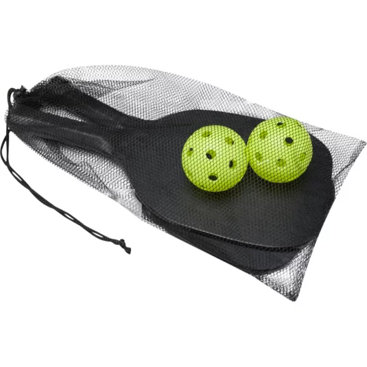 Sportset aus Pappelholz, die Griffe sind mit PU-Band umwickelt für maximalen Halt, wird inklusive 2 Bällen im praktischen Netzbeutel geliefert
