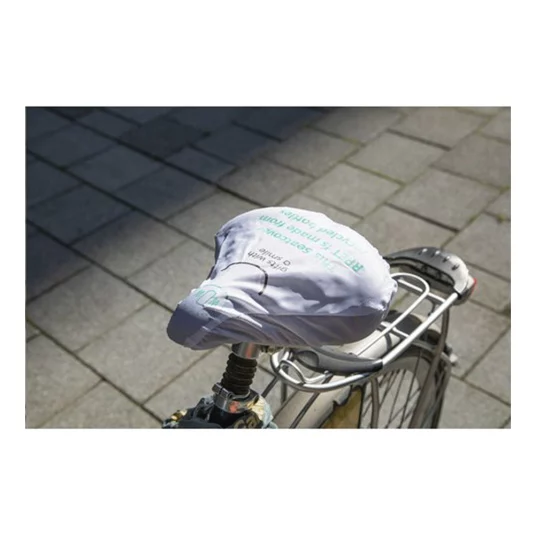 Die witzige Art der Kommunikation! Wetterbeständiger, strapazierfähiger Schutzüberzug für den Fahrradsattel, hergestellt aus rezyklierten PET-Flaschen, mit elastischem Gummizug
