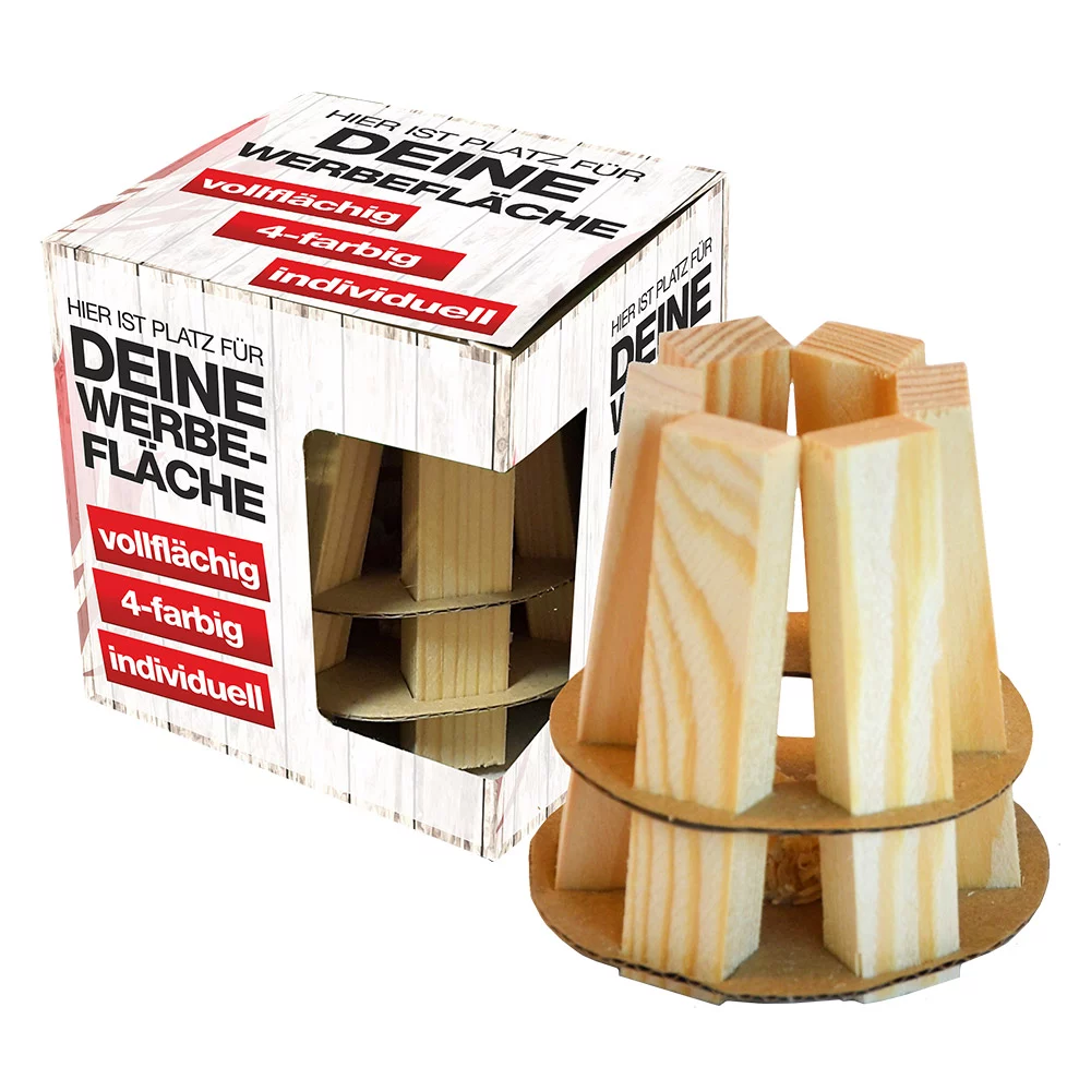 Auch Einfärben und Bedrucken der Holzsticks möglich (Preise auf Anfrage)