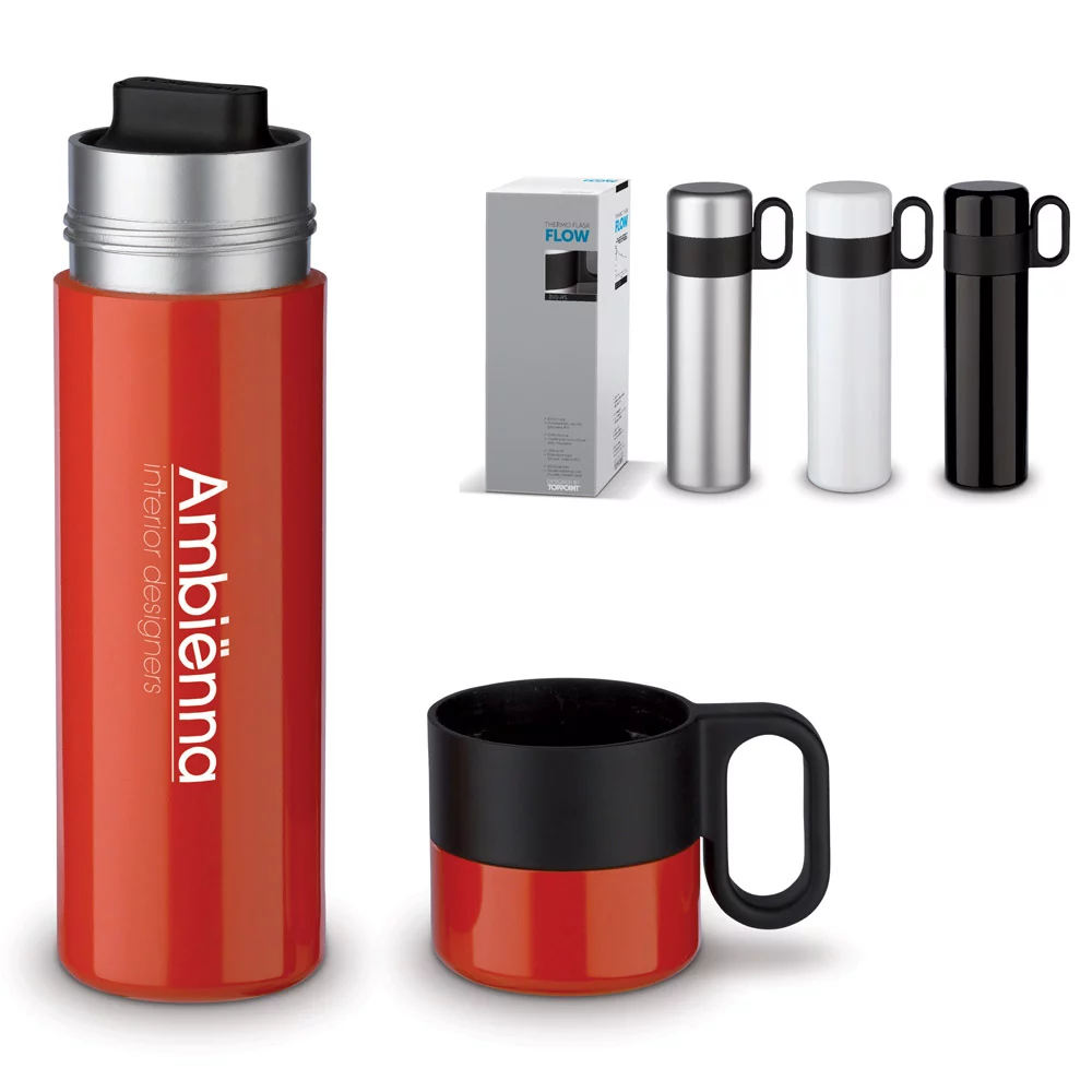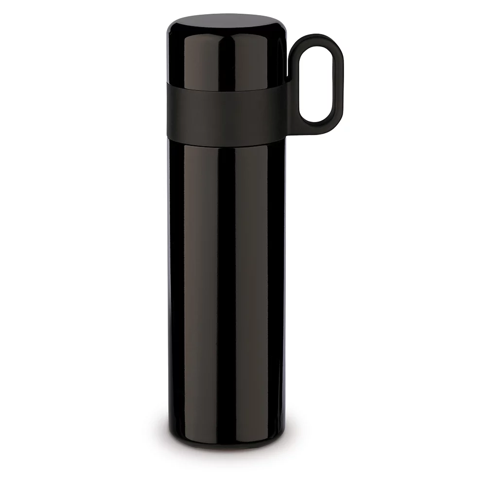 Doppelwandige Isolierflasche mit Becher, der gleichzeitig als Verschluss dient, Innen- und Aussenseite aus Edelstahl