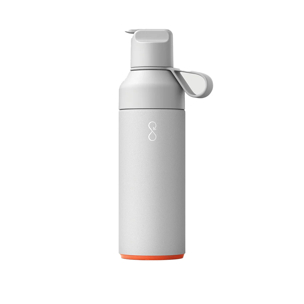 Stop Ocean Plastic - die sportliche Version für kalte Getränke! Kultige, nachhaltige Wasserflasche aus rostfreiem Edelstahl (65% rezyklierte Materialien inklusive 90% rezykliertem Edelstahl), mit praktischem "Ein-Hand-Verschluss", doppelwandig und vakuum-isoliert, hält Getränke bis zu 18 Stunden kühl, mit zwei Öffnungen für einfacheres Einfüllen und Auswaschen, sowie einem Trinkhalm aus Silikon, auslaufsicher und mit praktischer Trageschleife, 100% spülmaschinengeeignet, geliefert im Einzelkarton (100% rezykliertes Material), Inhalt 0,5 l