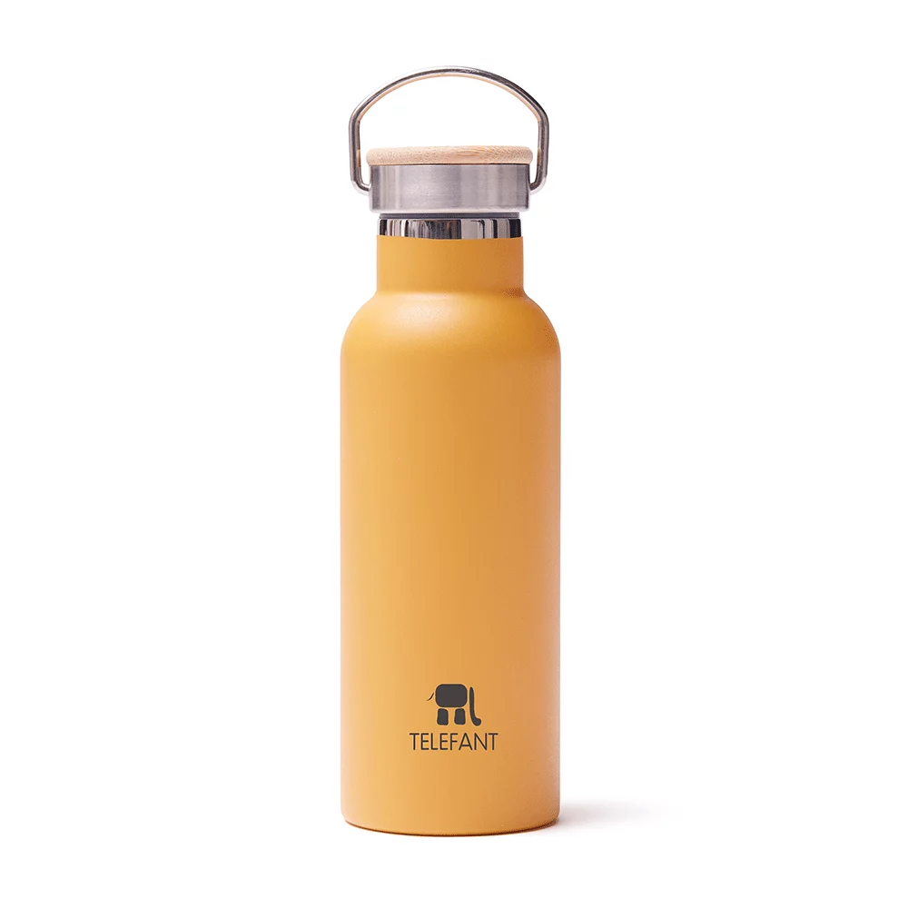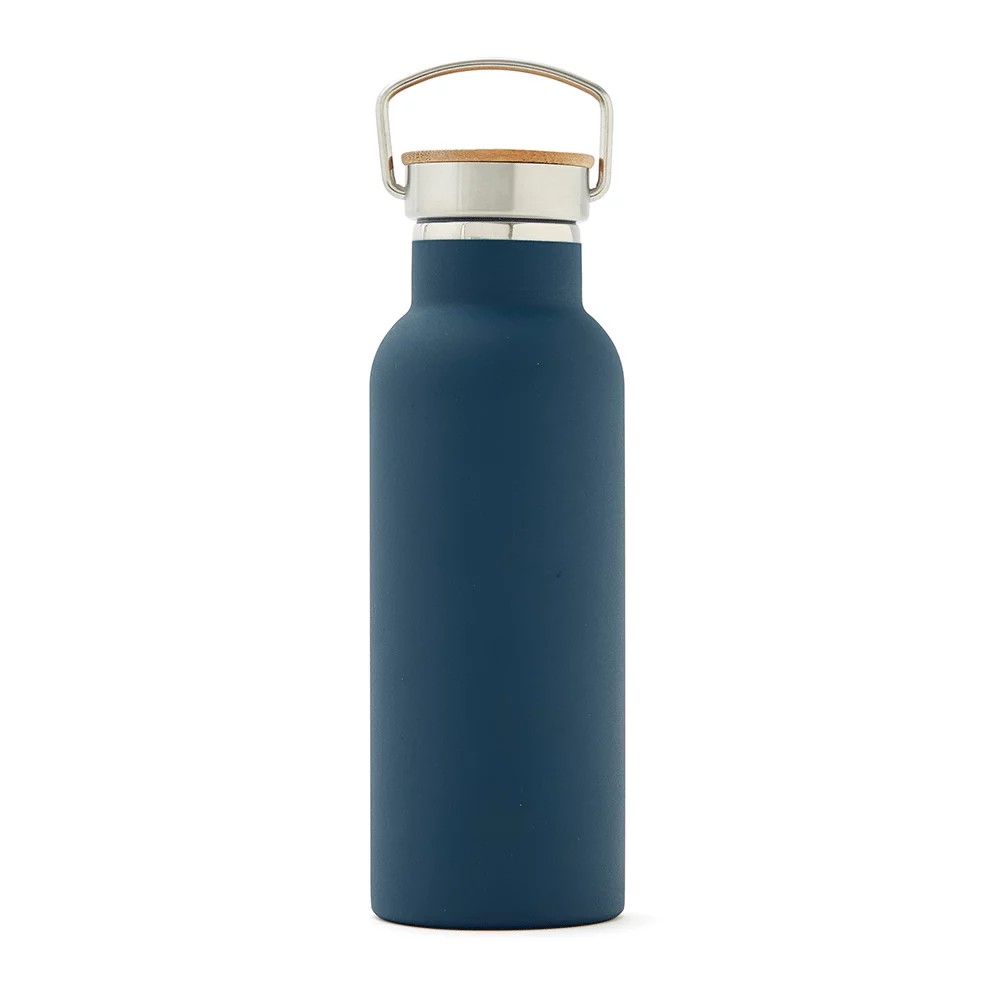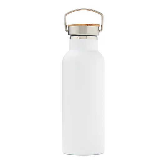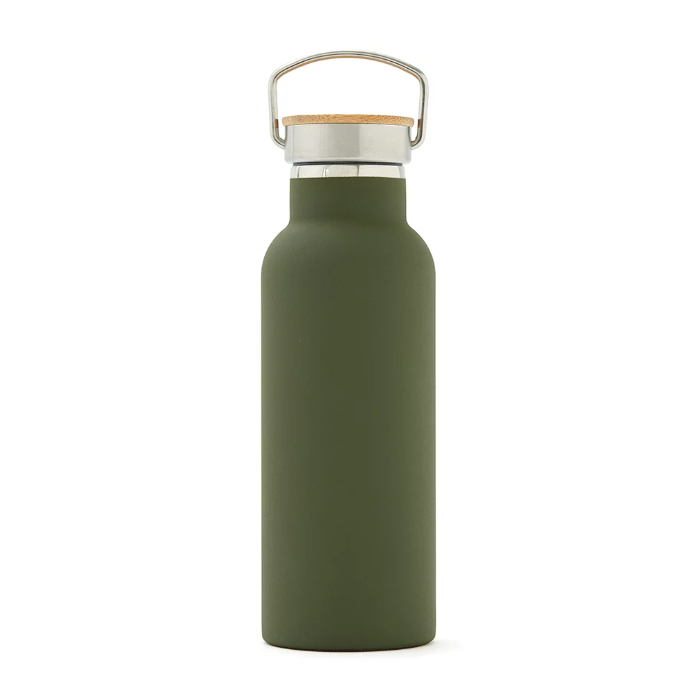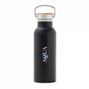 Edle Thermoflasche aus 18/8 rostfreiem Stahl, mit Vakuumisolierung welche Wasser bis zu 18 Stunden eiskalt - und warme Getränke bis zu 6 Stunden warm hält, geruchsneutral und auslaufsicher, Inhalt 0,5 l