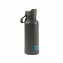 Stilvolle, auslaufsichere Thermoflasche aus doppelwandigem Edelstahl, hält Getränke bis zu 6 Stunden lang heiss oder kalt, einfaches Öffnen durch Knopfdruck, Inhalt 0,5 l