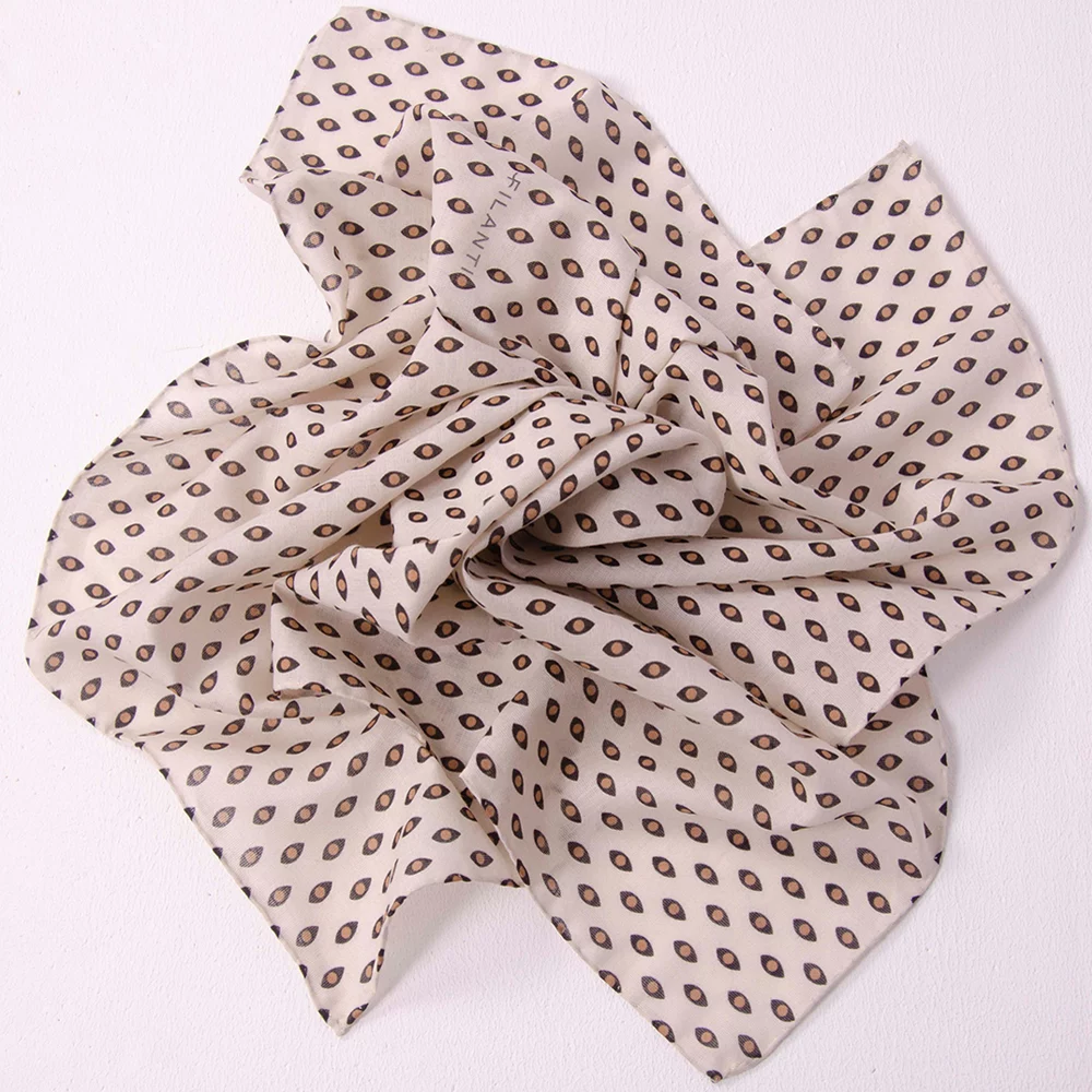 Schal aus GOTS zertifizierter Bio-Baumwolle mit All Over-Aufdruck, Längskanten mit Plattsausm oder Abschluss mit Fransen, nach Ihren Wünschen umgesetzt.