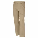 Bundhose mit 7 Gurtschlaufen, seitlich im Bund eingearbeitetem Gummizug, 2 aufgesetzten Vordertaschen, 1 verstärkten Gesässtasche mit Patte, verschliessbar mit verdecktem Klettverschluss, doppelte Massstabtasche, Hosenschlitz geknöpft, weisse Hosen mit Knietaschen verfügbar.