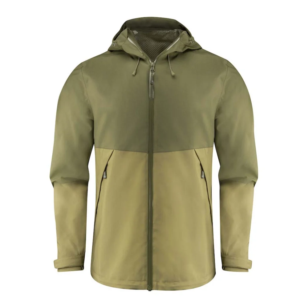 Moderne wasserdichte Herrenjacke mit Kapuze als Element des Layering-Konzeptes.