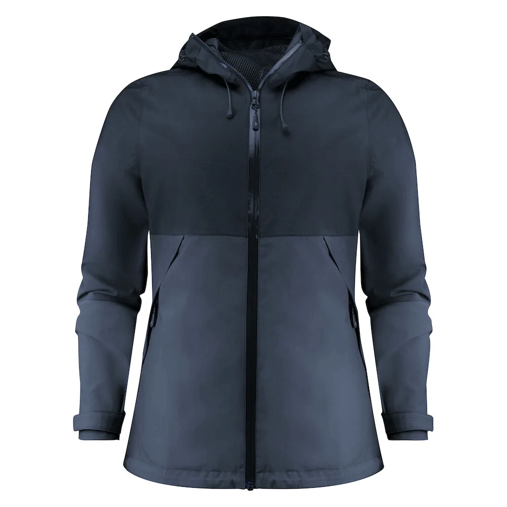 Moderne wasserdichte Damenjacke mit Kapuze als Element des Layering-Konzeptes.