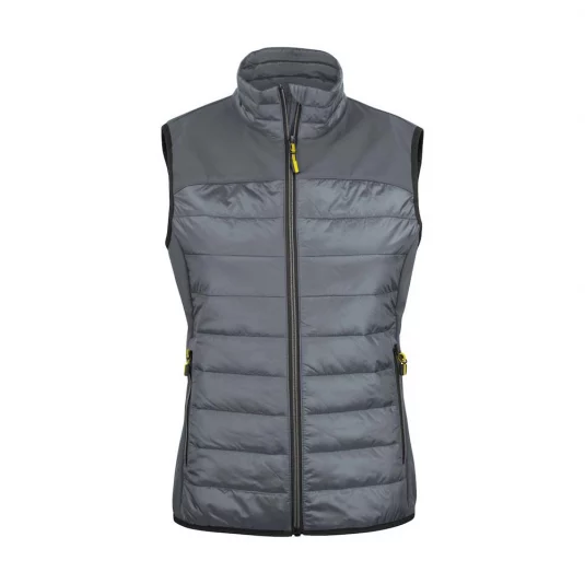 Wattiertes Gilet gesteppt und mit Sofshell Einsätzen über der Schulter und an den Seiten. Zwei Aussentaschen mit Reissverschluss, Innen zwei Beuteltaschen Meshgefüttert. Elastisches Band als Abschluss am Saum. Farbauswahl, Reissverschlüsse und Zipper Puller sind passend zu allen Essentials Artikel.