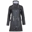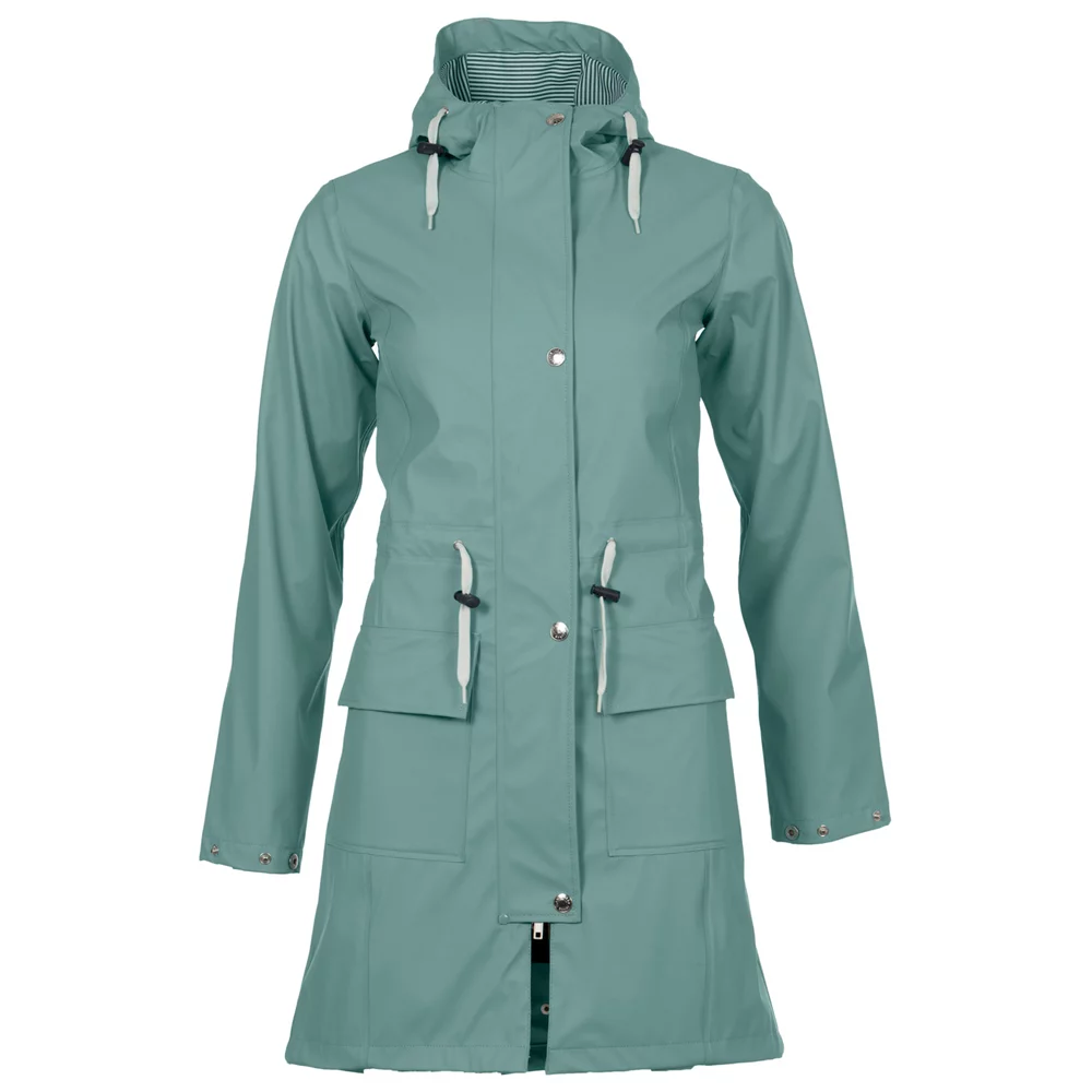 Klassische Regenjacke mit 2 Aussentaschen, abgedecktem Reissverschluss und fixer Kapuze.