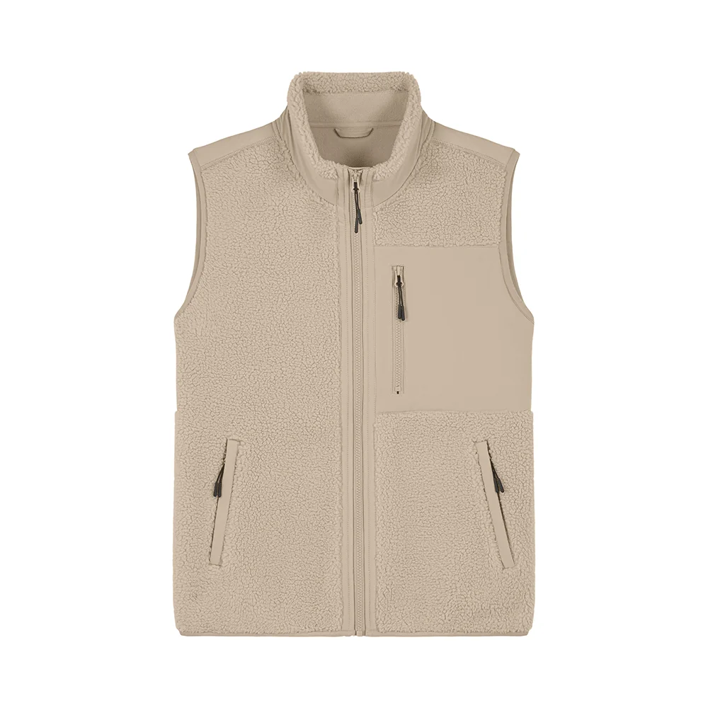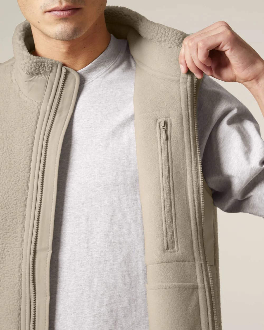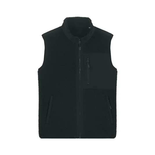 Wärmende Sherpa-Weste aus rezykliertem Polyester, mit vollständig verbundener Polarfleece-Schicht und Anti-Pilling-Finish auf der Innenseite, Reissverschluss-Brusttasche auf der Innen- und Aussenseite sowie Reissverschluss-Seitentaschen, Qualität: 100 % rezykliertes Polyester, 450 g/m²