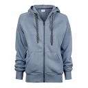 Trendige Sweat-Jacke mit Kapuze, Kordelzug in Kontrastfarbe, aufgesetzte Taschen, elastische Rippenbündchen an Ärmel und Saum, durchgehender Reissverschluss vorne, Doppelnähte