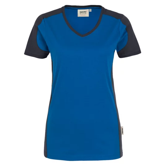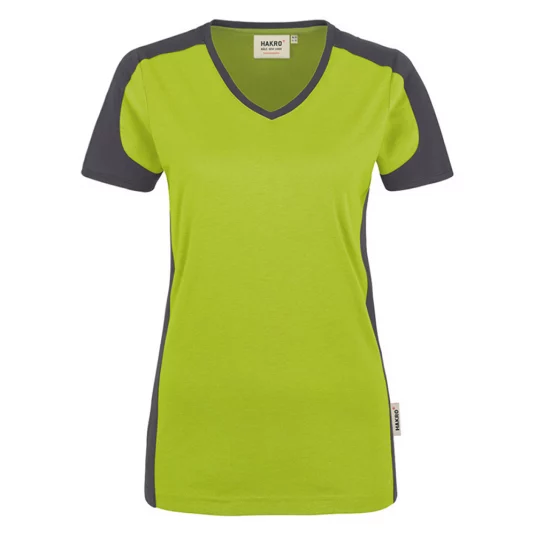 Damen V-Neck T-Shirt, besonders leistungsfähiges und funktionelles Shirt aus weichem, durch den Polyester-Anteil besonders pflegeleichtem und strapazierfähigem Materialmix.