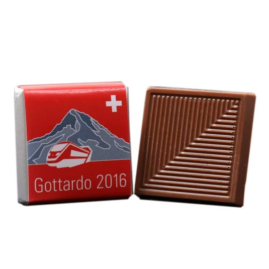 Schweizer Premium Schokolade (Vollmilch 37%, ohne Palmöl), einzeln verpackt in Folie (gold oder silber) mit Papierbanderole, Haltbarkeit ca.