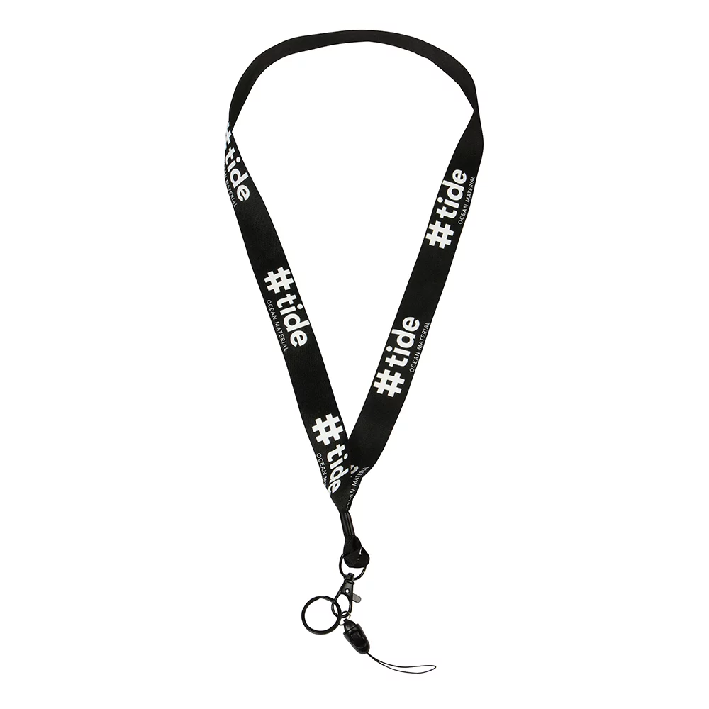 Für den Schutz der Meere - wir geben Abfall einen Wert! Trendiger, nachhaltiger Lanyard aus in der Schweiz entwickeltem #tide ocean material® (100% rezykliertes PET) , mit Karabiner, Schlüsselring und Anhänger für z.B. USB-Sticks, Mindestbestellmenge 500 Stück