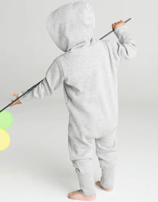 Baby All-in-One mit sehr weicher und flauschiger Innenseite, einfacher Kapuze, Sattel im Nacken, Nackenband, Zip vom Hals bis zum Unterschenkel für einfaches Anziehen und Veredeln, Kängurutasche, Breite Rippstrickbündchen an Arm- und Beinabschluss, leicht umzuetikettieren.