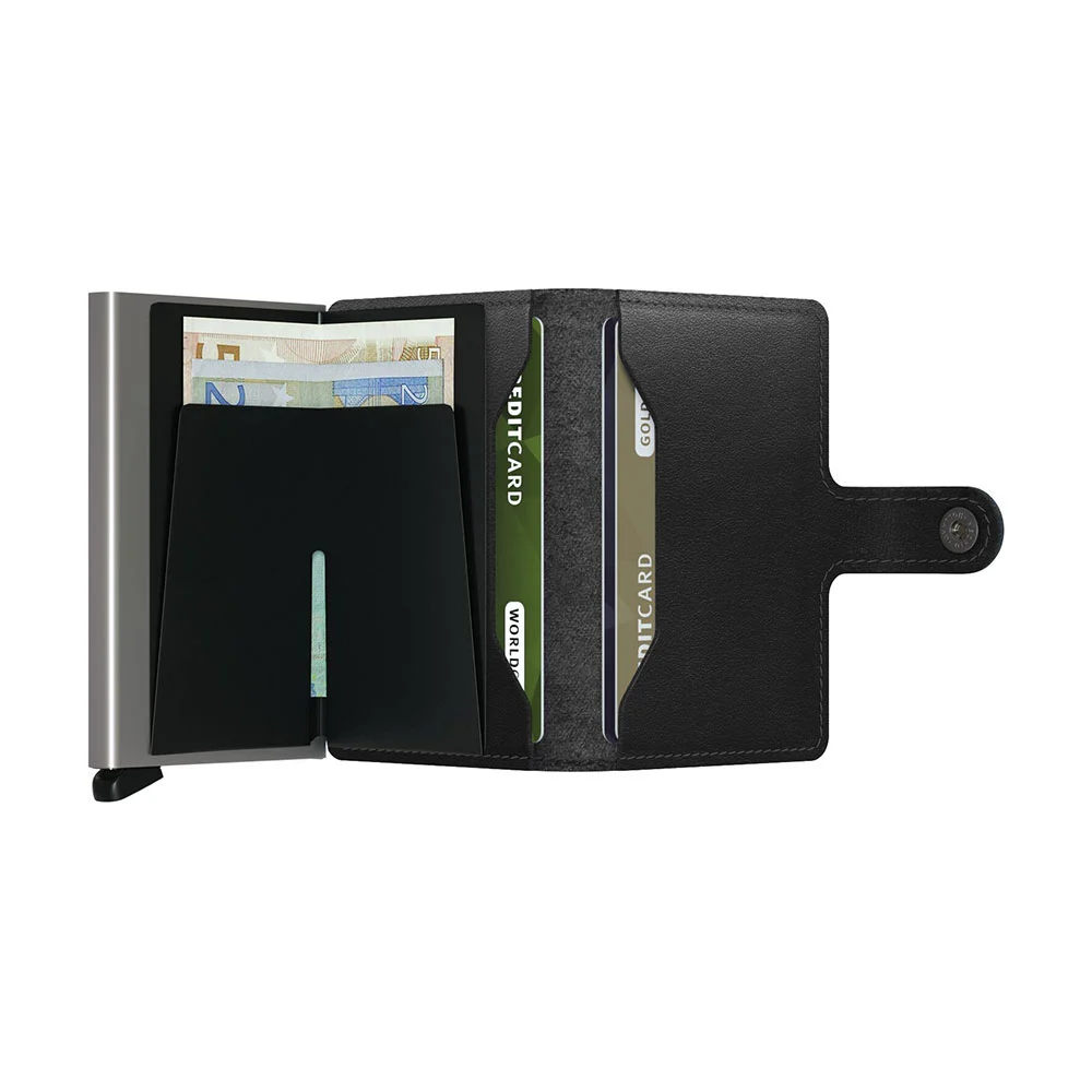 Elegantes Portemonnaie aus Leder, mit Alu-Fach zum sicheren Aufbewahren von 6 Kreditkarten, schützt vor unbefugtem Auslesen von Daten auf RFID-Karten, zusätzliche Fächer für bis zu 4 Karten, Geldnoten und Visitenkarten, hergestellt in Holland