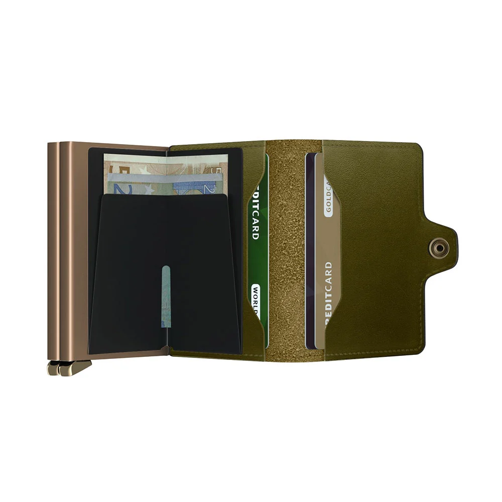 Elegantes Portemonnaie aus Leder, mit 2 Alu-Fächern zum sicheren Aufbewahren von 12 Kreditkarten, schützt vor unbefugtem Auslesen von Daten auf RFID-Karten, zusätzliche Fächer für bis zu 4 Karten, Geldnoten und Visitenkarten, hergestellt in Holland