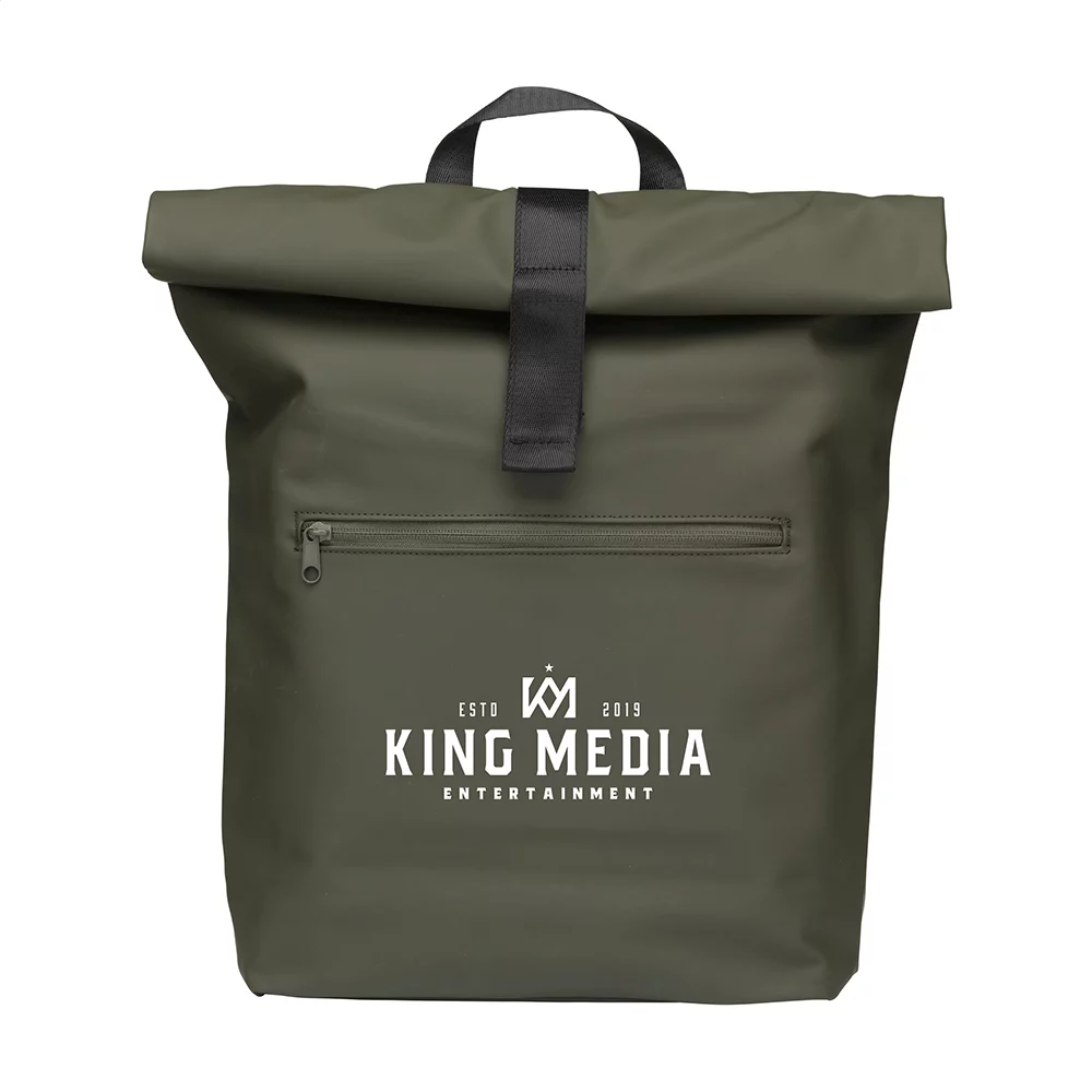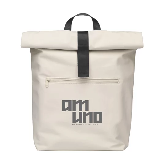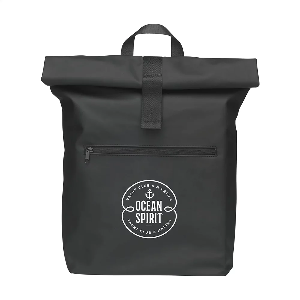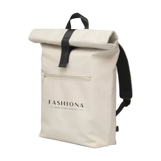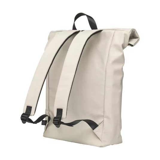 Urbaner Rucksack mit stylischer Aussenseite aus wasserabweisendem Kunstleder und einer Innenseite aus rezykliertem Kunstleder sowie rPET, mit praktischem Rollverschluss inklusive Klettband und Reissverschluss, einem separaten Laptop-Fach (bis zu 15,6 Zoll), diversen Innenfächern sowie verstellbaren, gepolsterten Schulterriemen