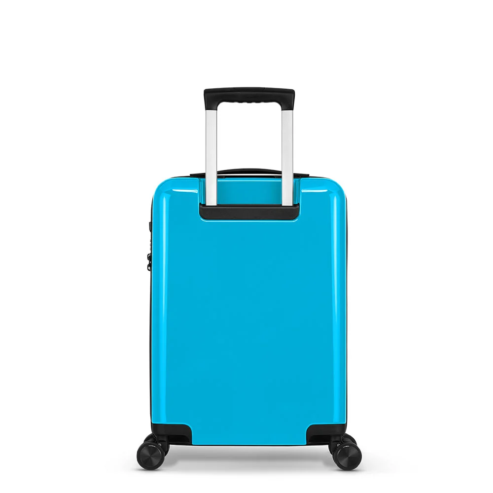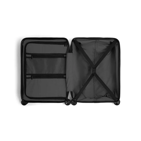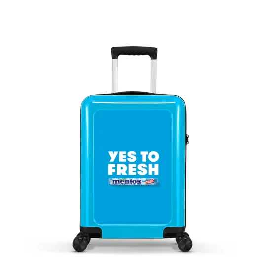 Langlebiger, leichter Trolley aus Kunststoff, mit vier 360°-drehbaren Rollen, einem 3-stufig verstellbaren Aluminium-Schiebebügel mit ergonomischem Griff sowie einem integrierten Zahlenschloss - der äusserst strapazierfähige Vinyl-Sticker kann mit dem eigenen Firmen-Logo oder Bild grossflächig und individuell gestaltet werden