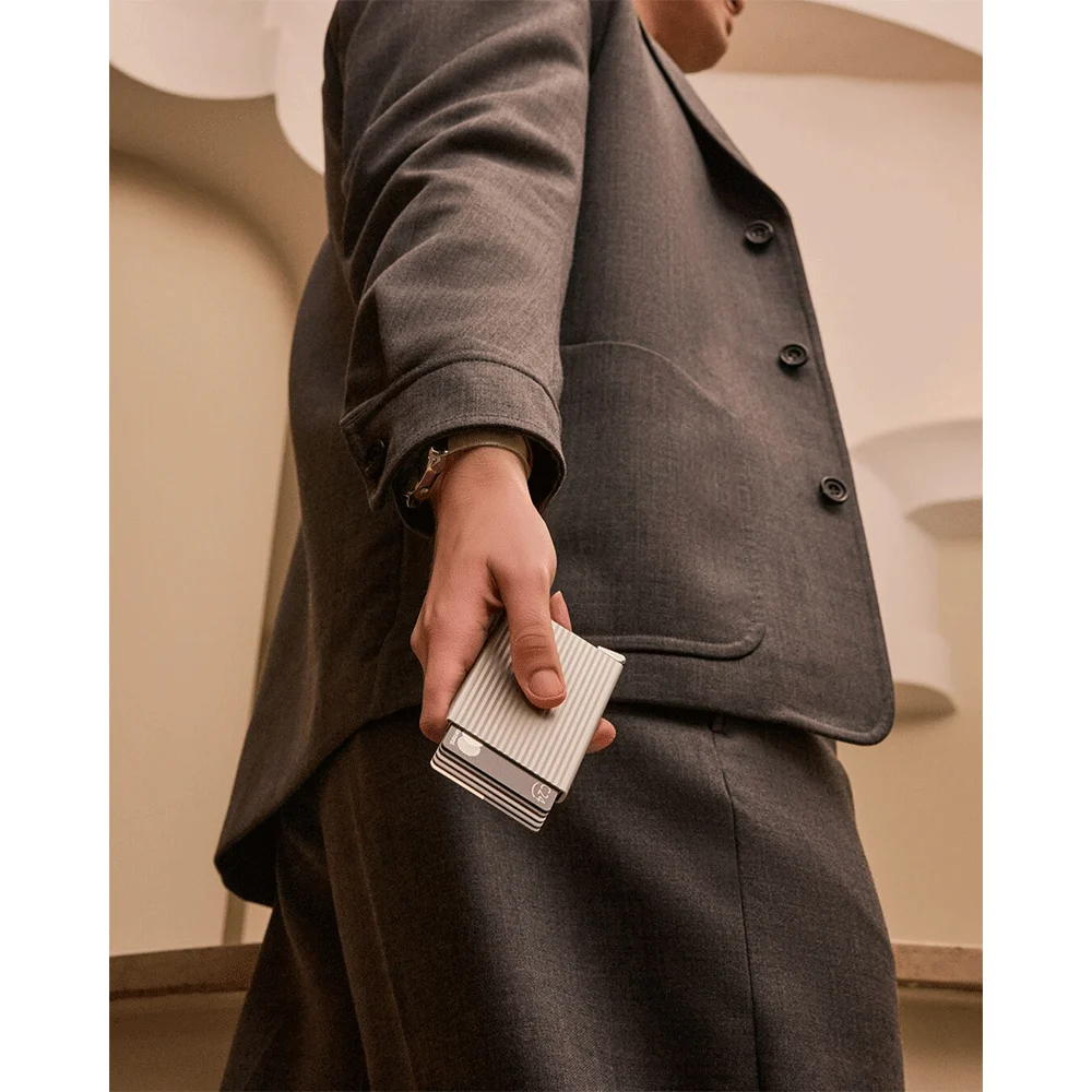 Das bewährte Original - mit innovativem Autolock-Mechanismus! Eleganter Kartenhalter aus Aluminium, speziell entwickelt, um auch Metallkarten zu halten - zum sicheren Aufbewahren von 4 Kreditkarten mit - oder 6 Kreditkarten ohne Prägung, schützt vollständig vor unbefugtem Auslesen von Daten auf RFID-Karten, hergestellt in Holland