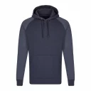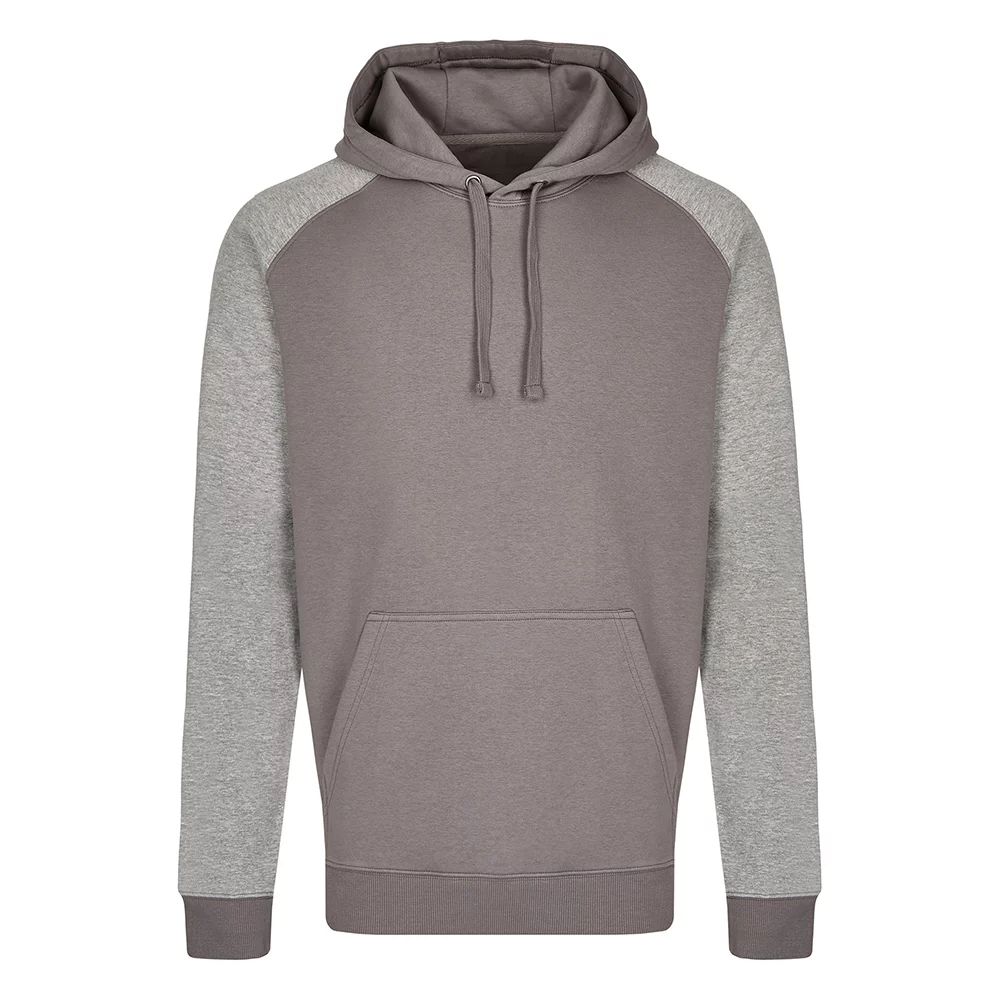 Moderner Hoody aus ringgesponnener Baumwolle, 3-teilige, doppellagige Kapuze für besseren Tragekomfort,  flache Kordel, Kängurutasche, Ärmelabschlüsse und Bund aus 2x1 Ripp-Strick und Raglan-Ärmel.