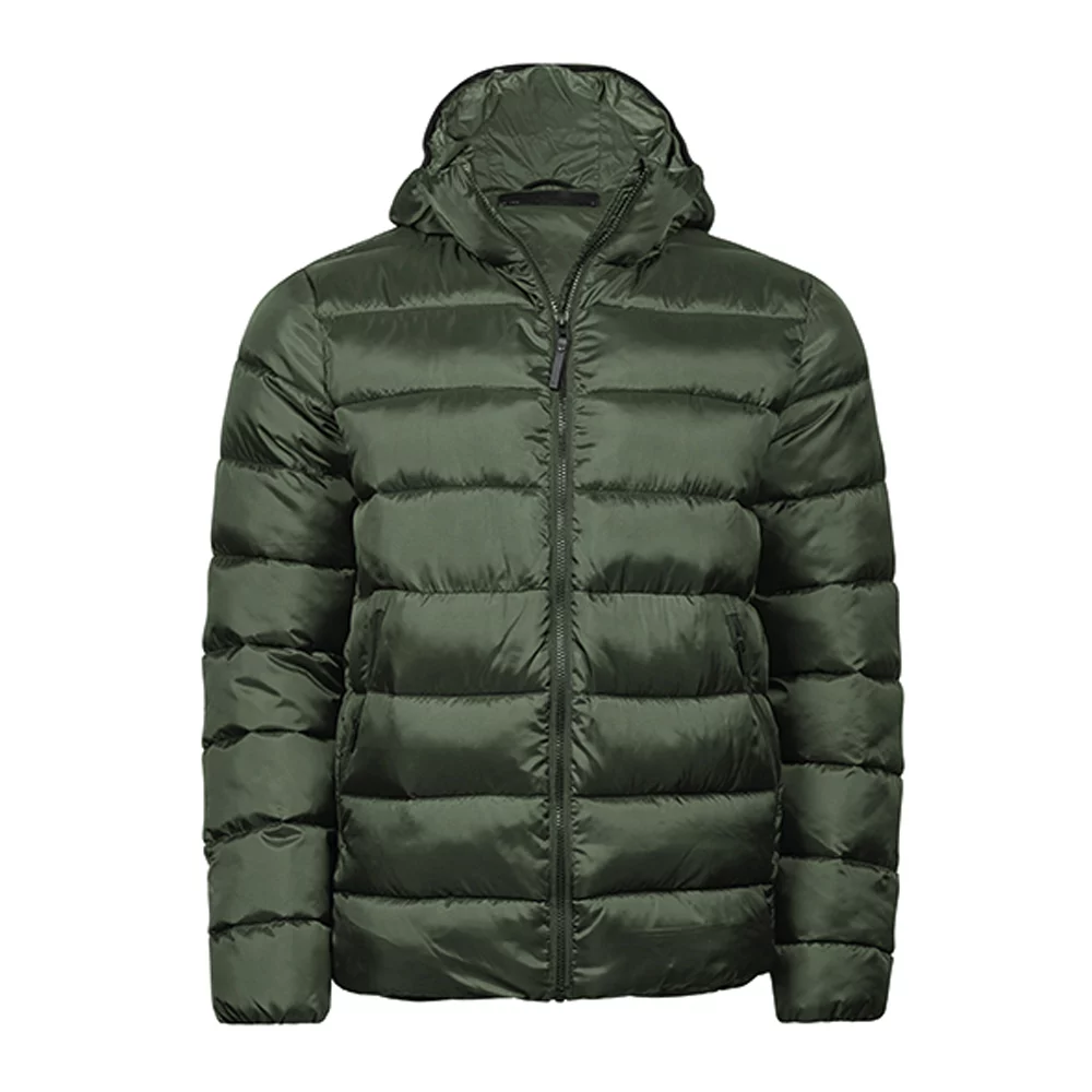 Wasserabweisende Unisex Steppjacke mit Kapuze und Stehkragen. Zwei grosse Fronttaschen und eine Innentasche mit Reissverschluss, Versteckte elastische Ärmelabschlüsse und elastischer Kordelzug mit Stoppern am Saum. Mattes, strukturiertes 1x1 Ripstop-Gewebe.