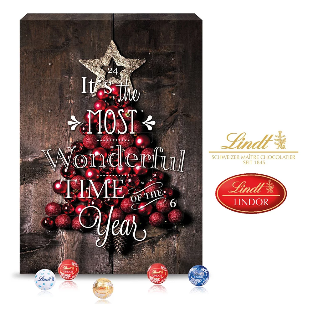 Der perfekte Wand-Adventskalender in Premium-Qualität, befüllt mit 24 feinsten Mini-Lindor-Kugeln gemischt (ca.