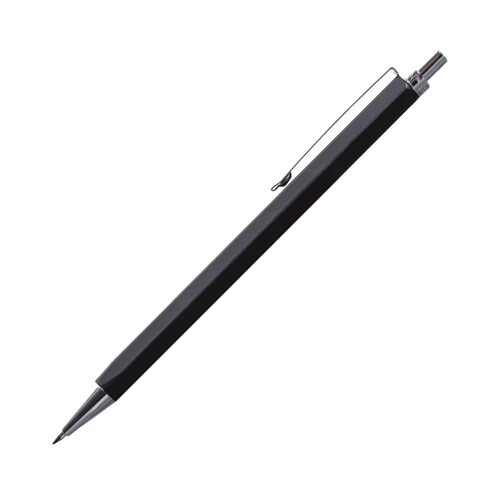 Swiss Design – ein hochwertiges, schlankes Schreibgerät mit Messingschaft und verchromten Beschlägen, ausgestattet mit einer Metall-Grossraum-REZPEN®-Mine (blau), die auf Schweizer Präzisionsmaschinen gefertigt wird und eine Schreiblänge von über 5'000 Metern bietet