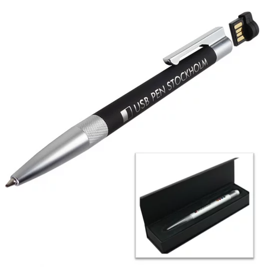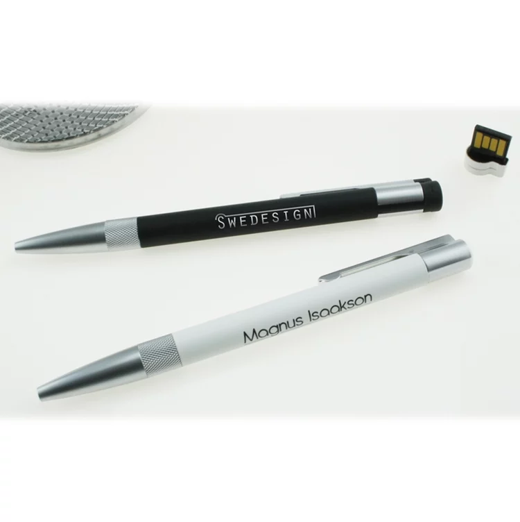 Stilvolles Schreiberät mit blauer Mine und integriertem USB-Stick, aus Metall und mit gummierter Oberfläche (softtouch), mit einer Speicherkapazität bis maximal 128 GB die perfekte Kombination - Kalkulationsbeispiel: 4 GB Spezifikationen: - USB 2.