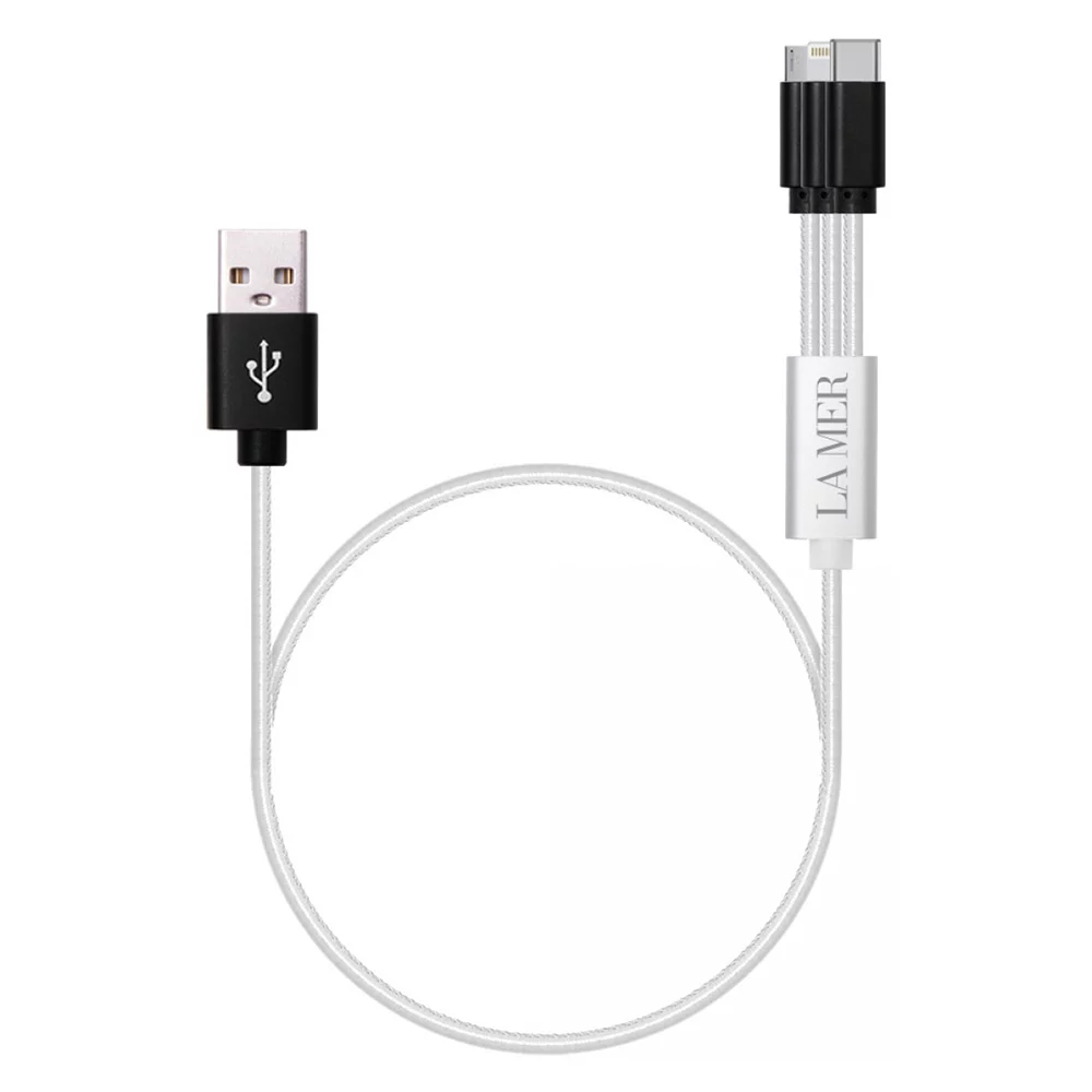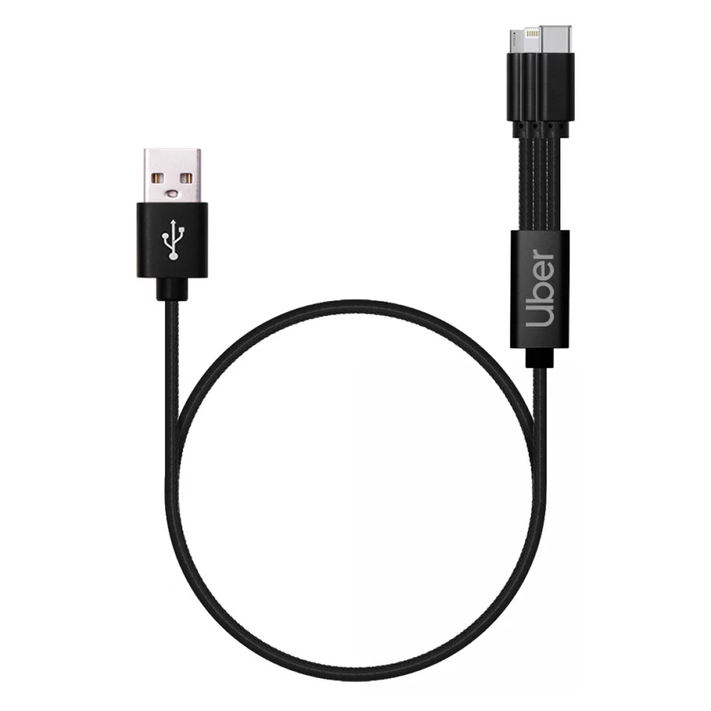 Styllisches 3-1 Ladekabel aus PU-Leder, ausgestattet mit Lightning-, Micro-USB-, Type-C- und USB-Anschluss, für alle Geräte einsetzbar, wird in Polybeutel geliefert, Mindestbestellmenge 500 Stück Auch weitere Varianten (z.