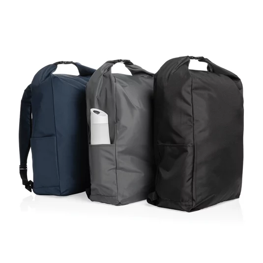Stylisch und nachhaltig! Rucksack hergestellt aus 11 PET-Flaschen (300D rPET), mit geräumigem Hauptfach, kleinem Aussenfach, verstellbaren Schultergurten und trendigem Wickelverschluss