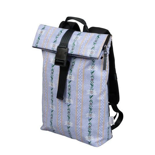Swiss Made, nachhaltig und trendig! In der Schweiz aus lokalen Lastwagenplanen (520g/m2) sorgfältig hergestellter Rucksack, mit grossem Hauptfach, einem extra gepolsterten Fach für Laptop oder Tablet, einem Reissverschluss-Innen- und Aussenfach, sowie einem gepolstertem Rückenteil mit bequemen, verstellbaren Schultergurten