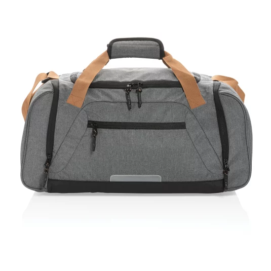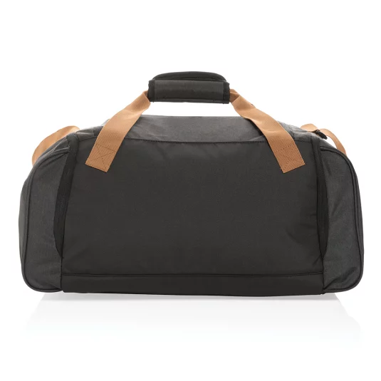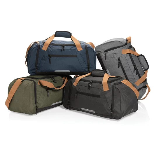 Urbane Tasche hergestellt aus 24 PETFlaschen! Aussenseite aus 50 % rezykliertem Two-Tone Polyester und Innenfutter aus 100 % rezykliertem Polyester, mit grossem Hauptfach, zusätzlichem Frontfach mit Reissverschluss, seitlichen Reissverschlusstaschen und bequemen, verstellbaren Schultergurten
