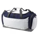 Tasche aus Polyester mit grossem Hauptfach, 2-Wege Reissverschluss, Vortasche mit Reissverschlussfach, zwei Seitentaschen, eine davon mit Schuhfach, abnehmbarer, längenverstellbarer Umhängegurt mit bequemem Schulterpolster