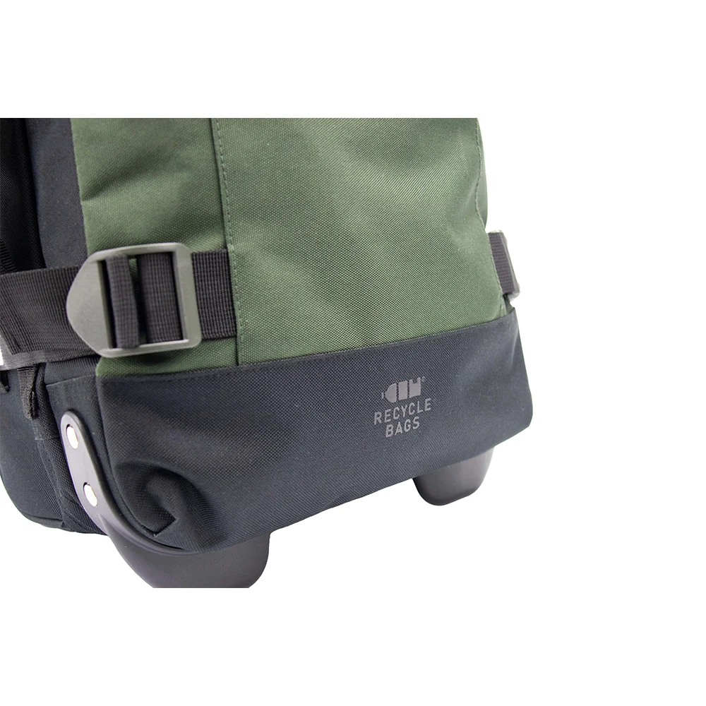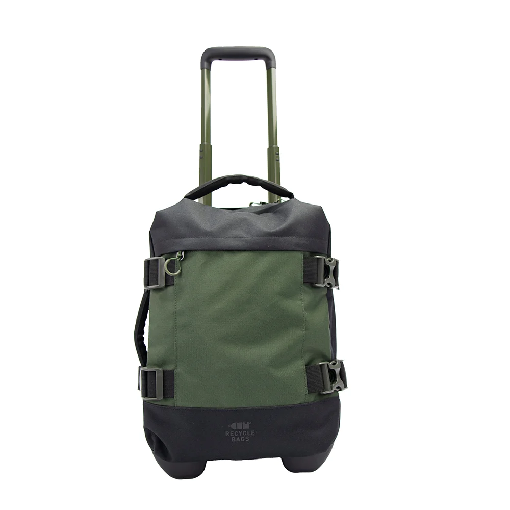 Der perfekte Kabinen-Trolley in Handgepäckgrösse – leicht, stylisch, nachhaltig! Hergestellt aus 100 % rezyklierten Plastikflaschen, mit zwei robusten Rollen für müheloses Gleiten, stabilem Ziehgriff aus Metall und robusten Schnallen