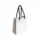 Small boutique carrier bags, of art paper C2S 200 gm2 (available with matte or shiny surface), with textile cords, reinforced border and inserted cardboard base, minimum order 500 pc