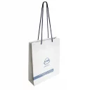 Large boutique carrier bags, of art paper C2S 200 gm2 (available with matte or shiny surface), with textile cords, reinforced border and inserted cardboard base, minimum order 500 pc