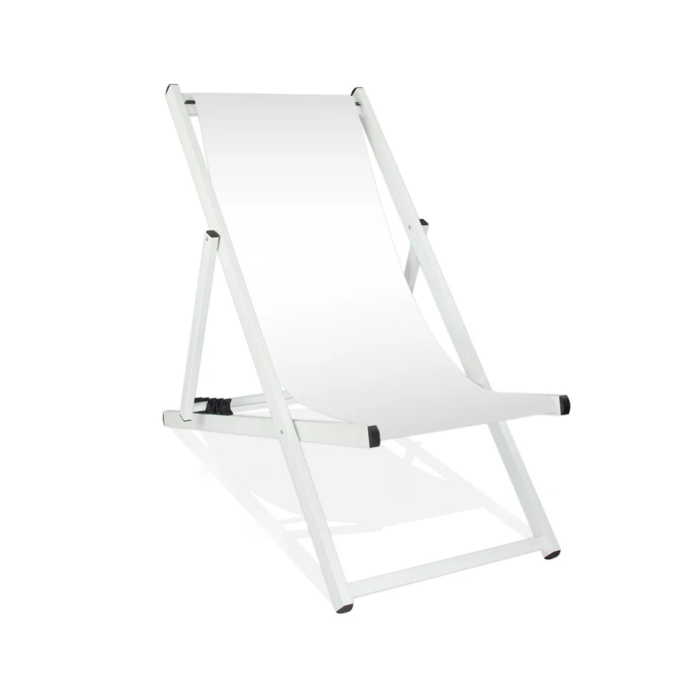 Lightweight, four-stage adjustable outdoor lounger with aluminium frame and replaceable polyester cover