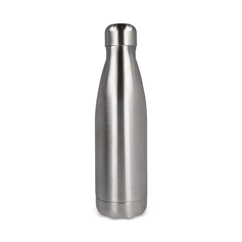 Leak-proof, double-walled thermo bottle made from recycled stainless steel, keeps hot drinks warm and cold drinks cold for a few hours, capacity 0.