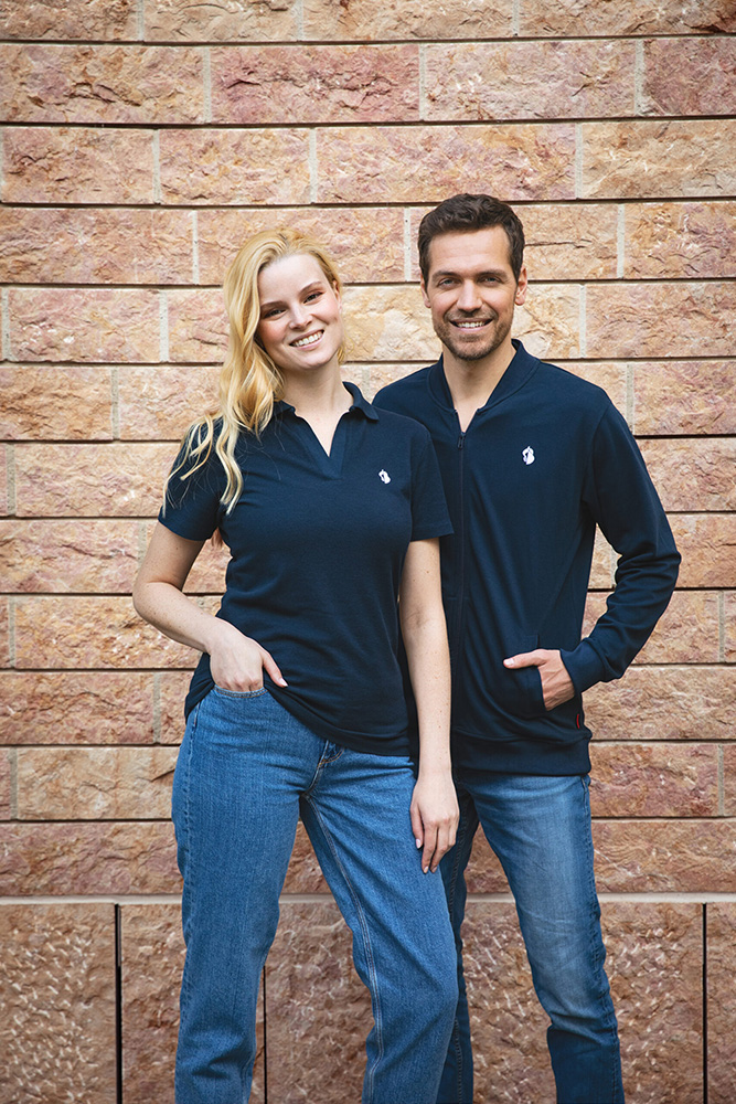The production of the elegant short- and long-sleeve polo shirts, as well as the stylish blouson jacket, was carried out in Portugal.