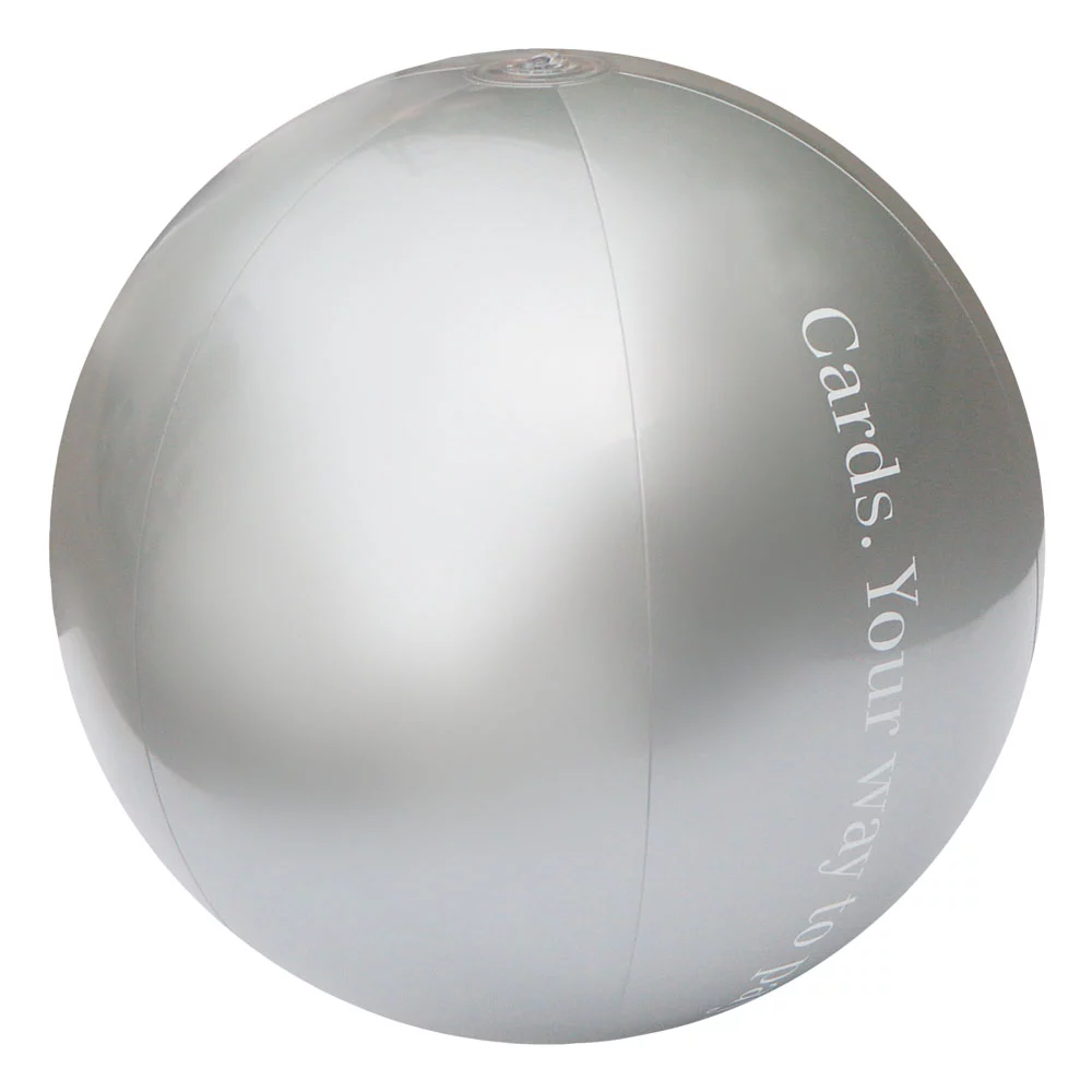 Inflatable ball of sturdy PVC material, phthalate-free (according to Swiss regulations), vent with EN 71 standard, minimum order 500 pc, if desired also available in ?