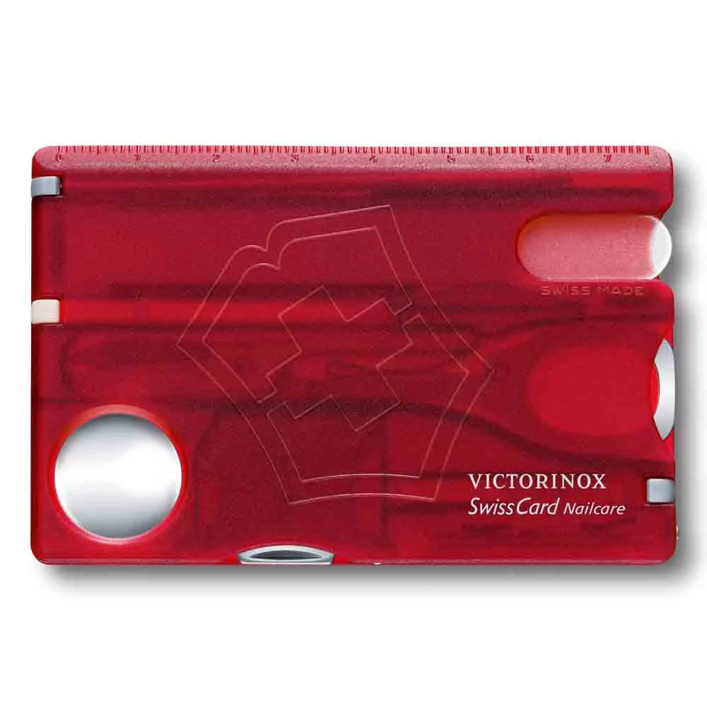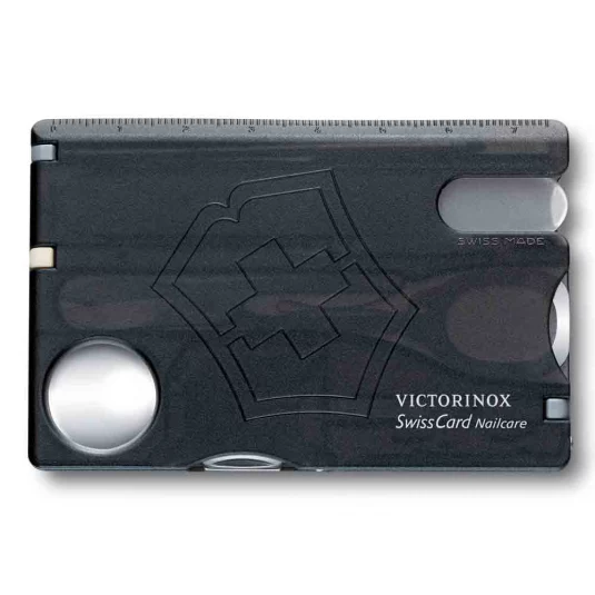 The SwissCard Nail care in practical credit card format astonishes with 13 functions, of which a glass nail file.