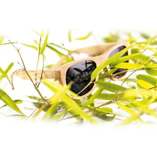 Trendy sunglasses with polarized lenses (UV400 and protection category 3), in handmade bamboo frames, individually packed in microfiber bags