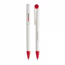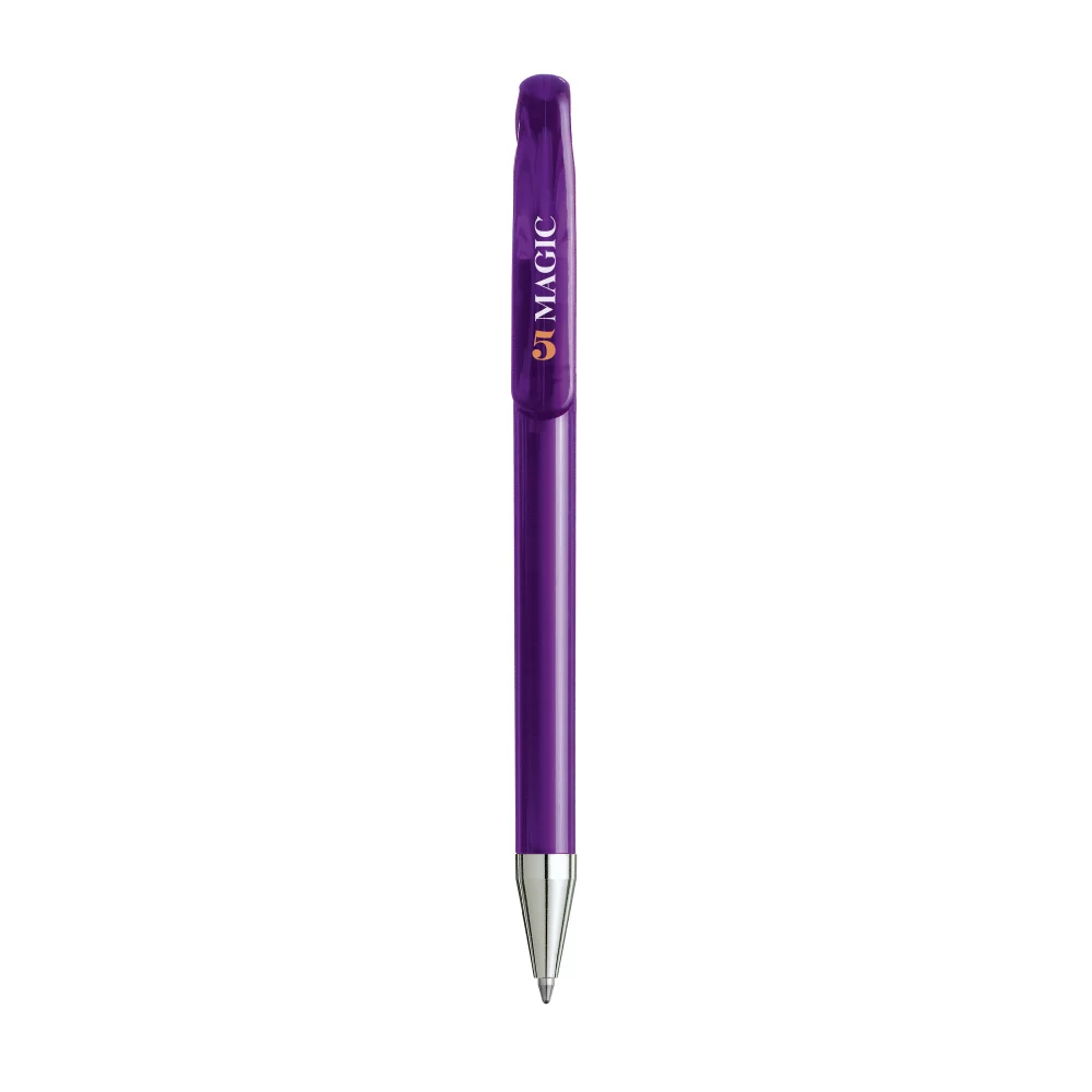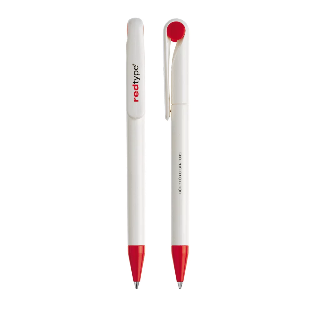 Swiss made, plastic twist ballpoint pen with wide clip and plastic jumbo cartridge (black or blue) Colors: most colors available in shiny, mat, frosted or transparent, colors of shaft, tip and end freely combinable Extra charge for metal tip on request Extra charge for cap dot: SFr.